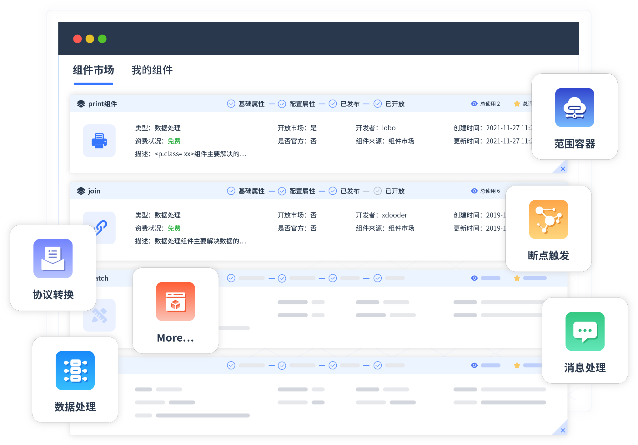 针对集成场景,,,OKPAY钱包提供组件市场,,,例如协议转换 、、、消息处理 、、、文件操作等。。。除平台提供的组件外,,,客户可以自定义所需组件。。。